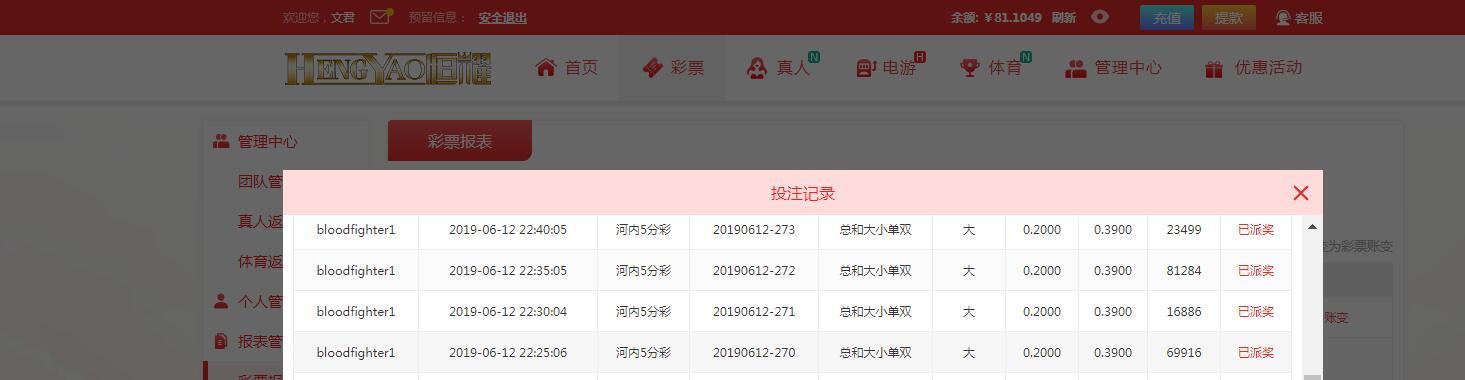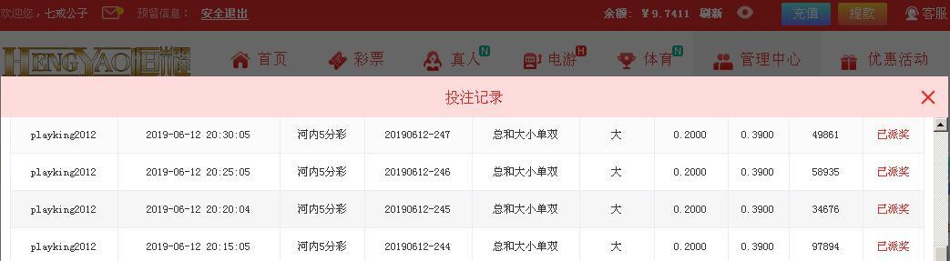 【恒耀娱乐】河内五分彩争霸赛!第007期第3天(06月12日) |