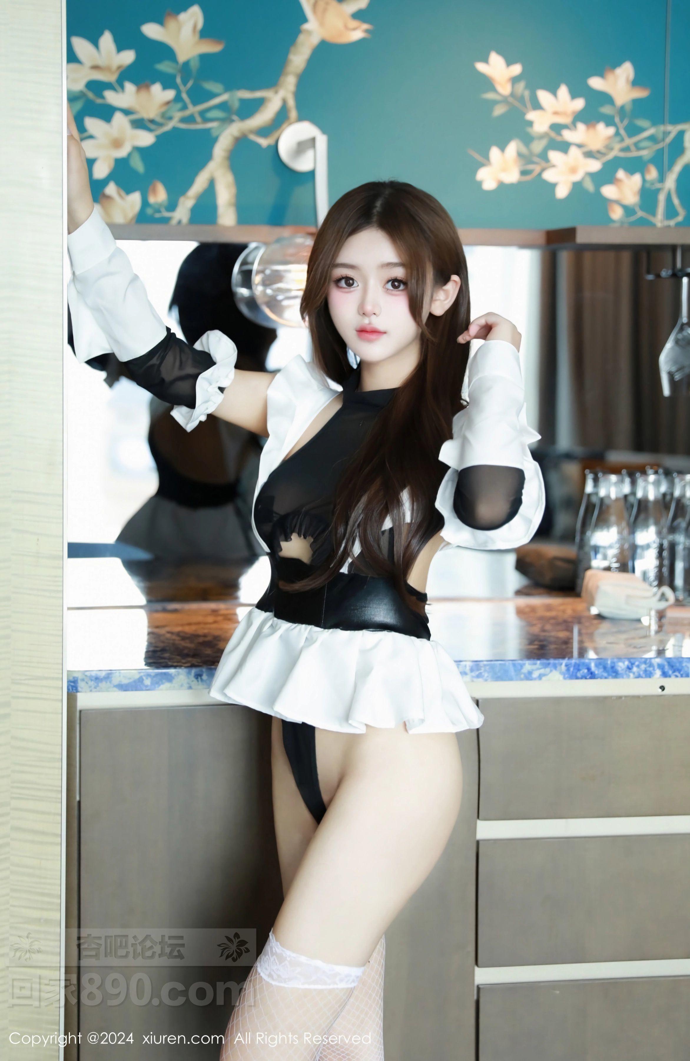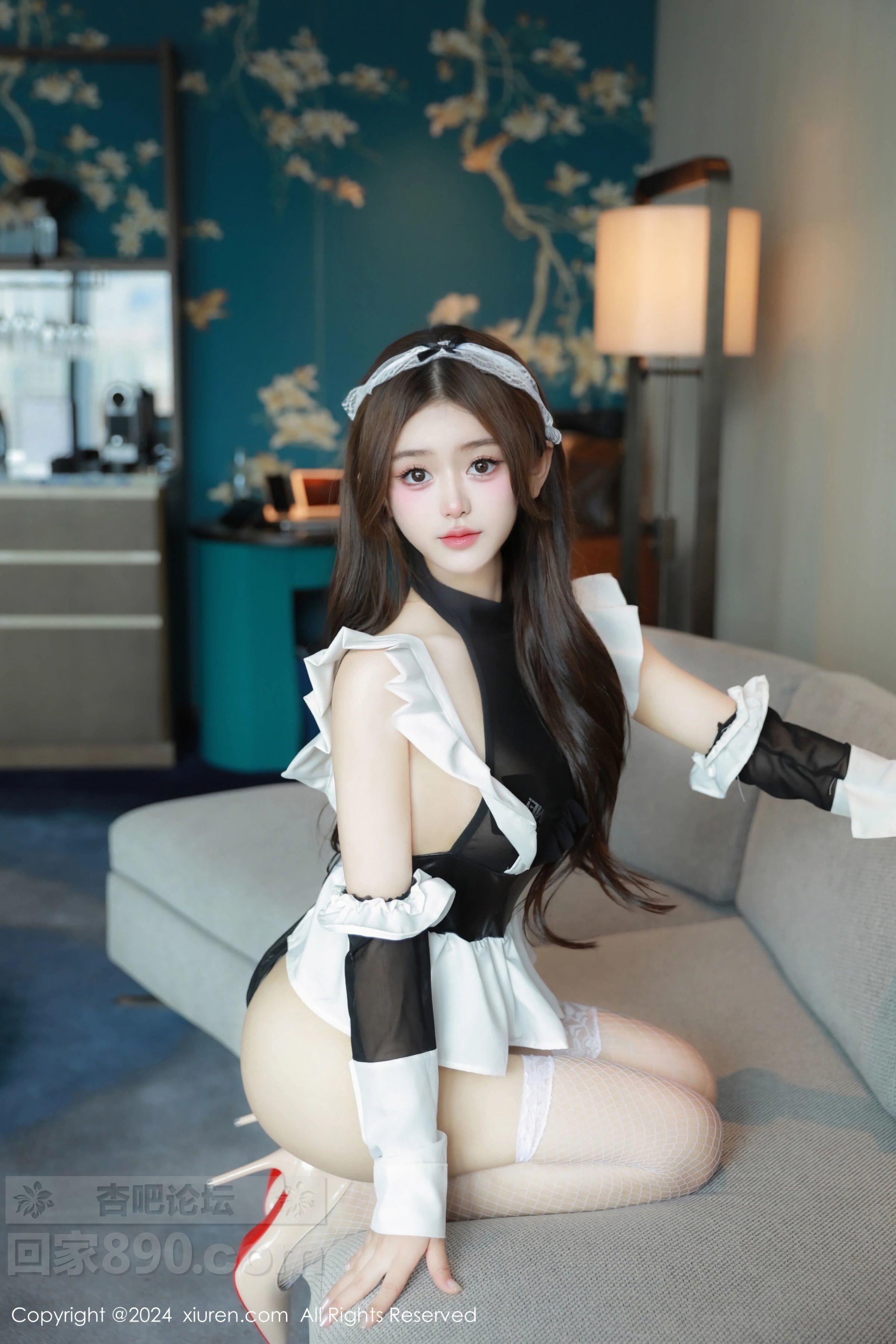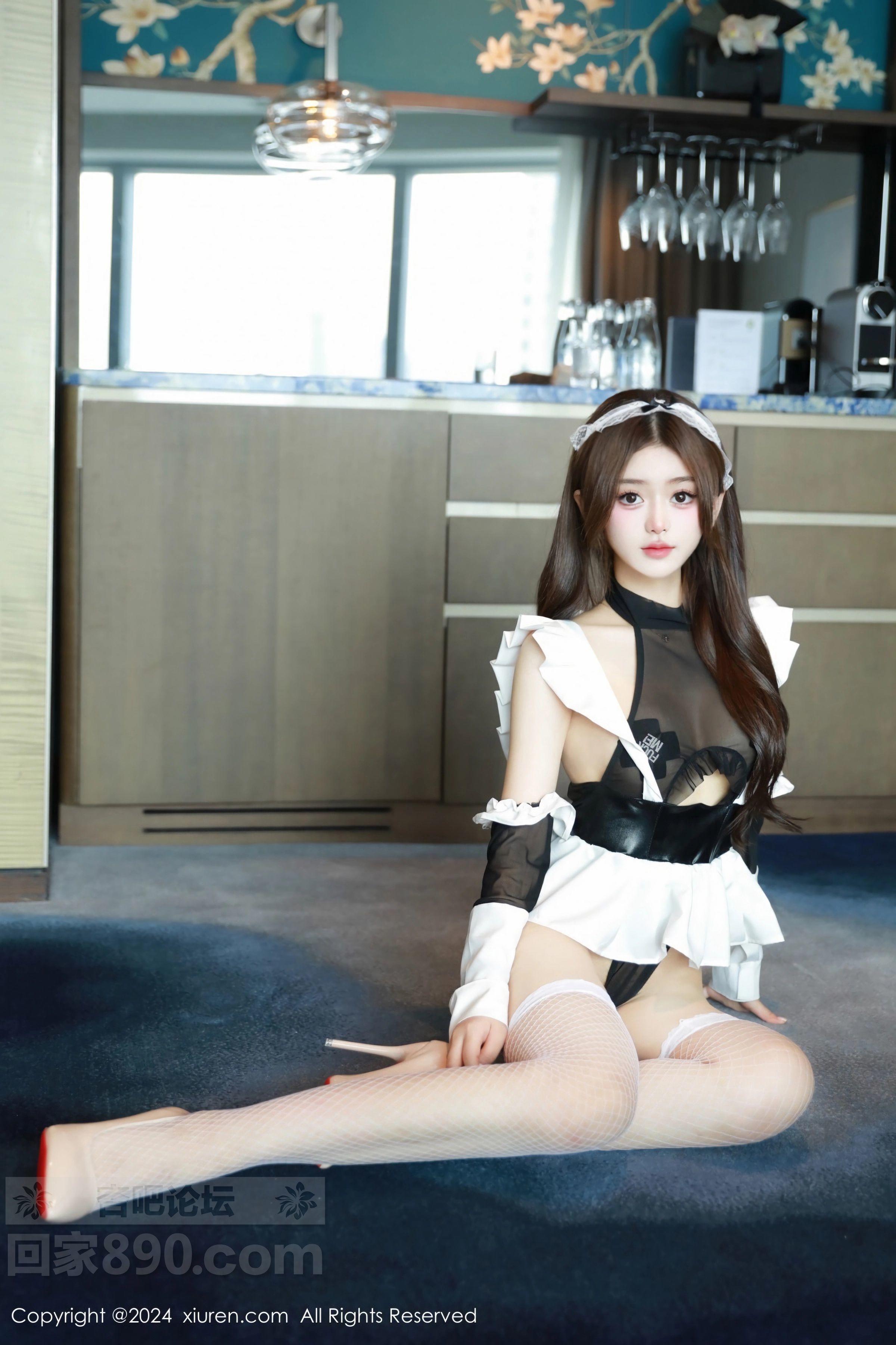 [美腿翘臀] 模特媃柔rourou性感情趣女仆装配白色网袜秀柔美身段诱惑写真【50P】 |