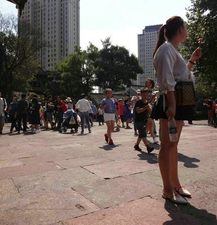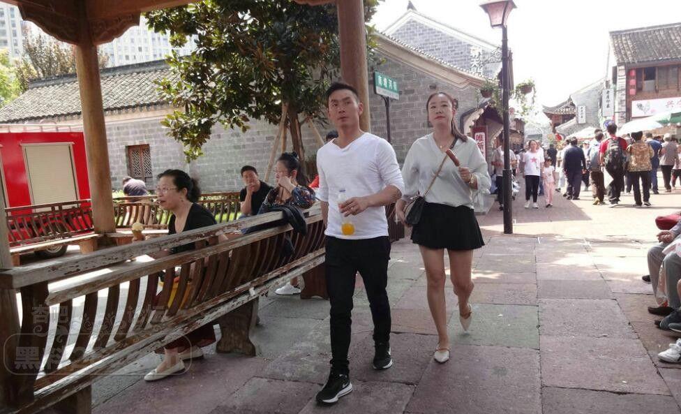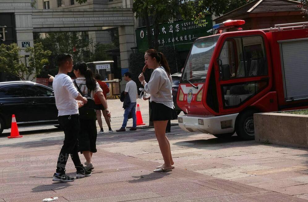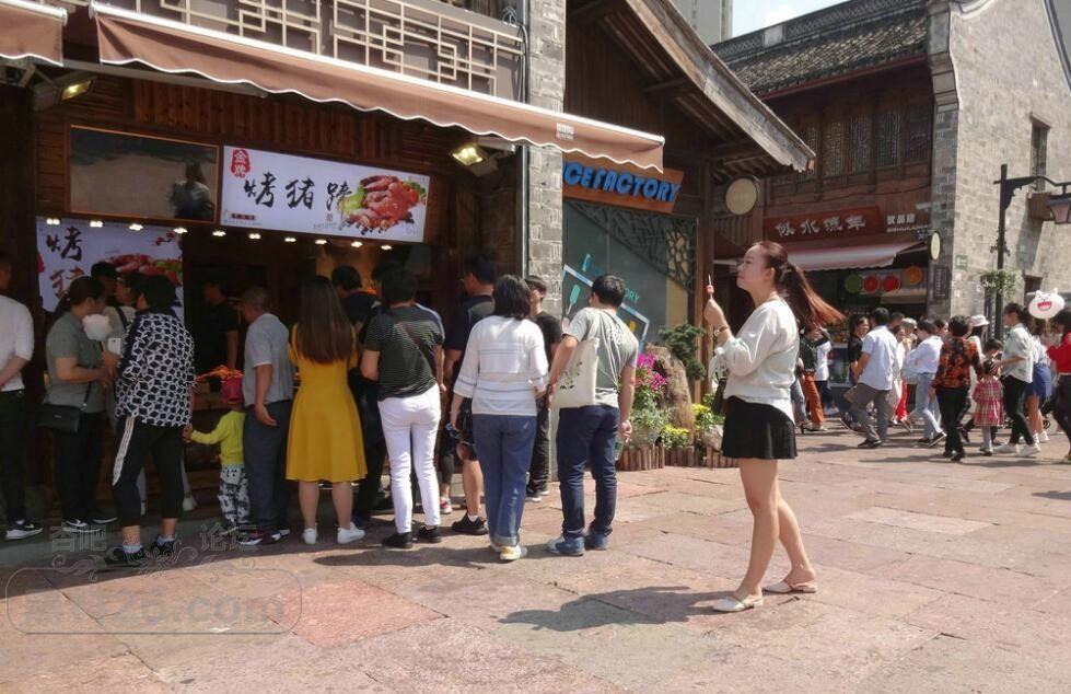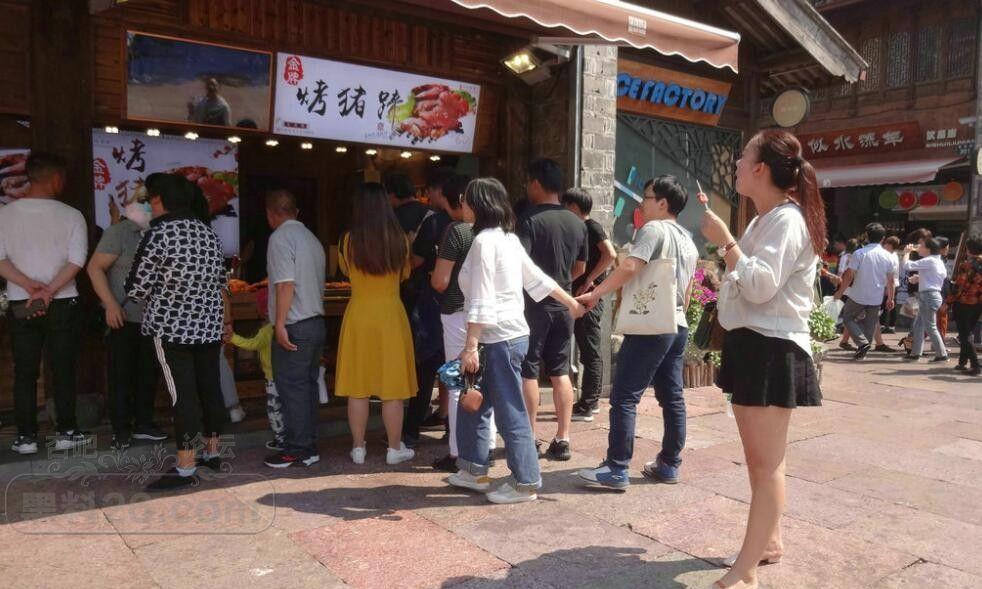 这位姐姐已经开始发福了,但还是吃着烤肠盯着烤猪蹄。