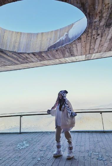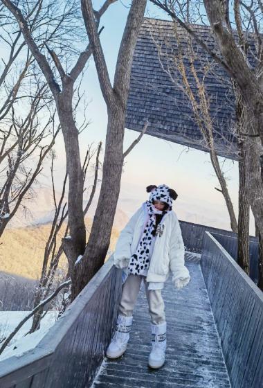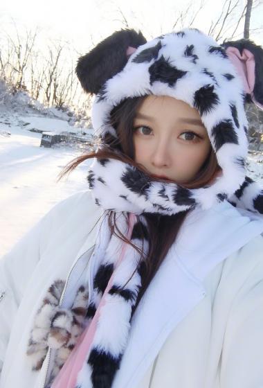 美女黄一琳俏皮深冬户外玩偶帽温暖雪景【10P】
