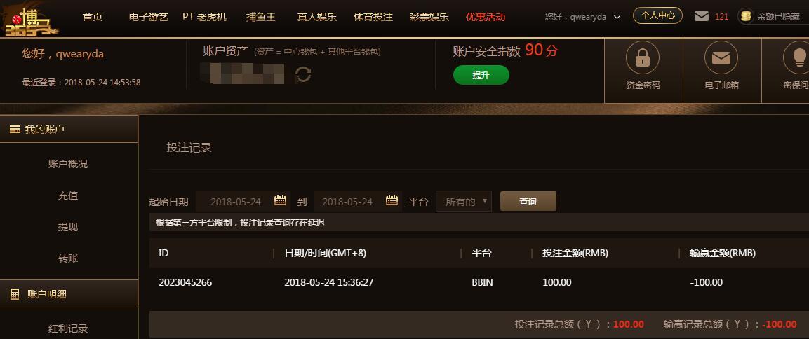 5月24日博马波音亏损100元 |